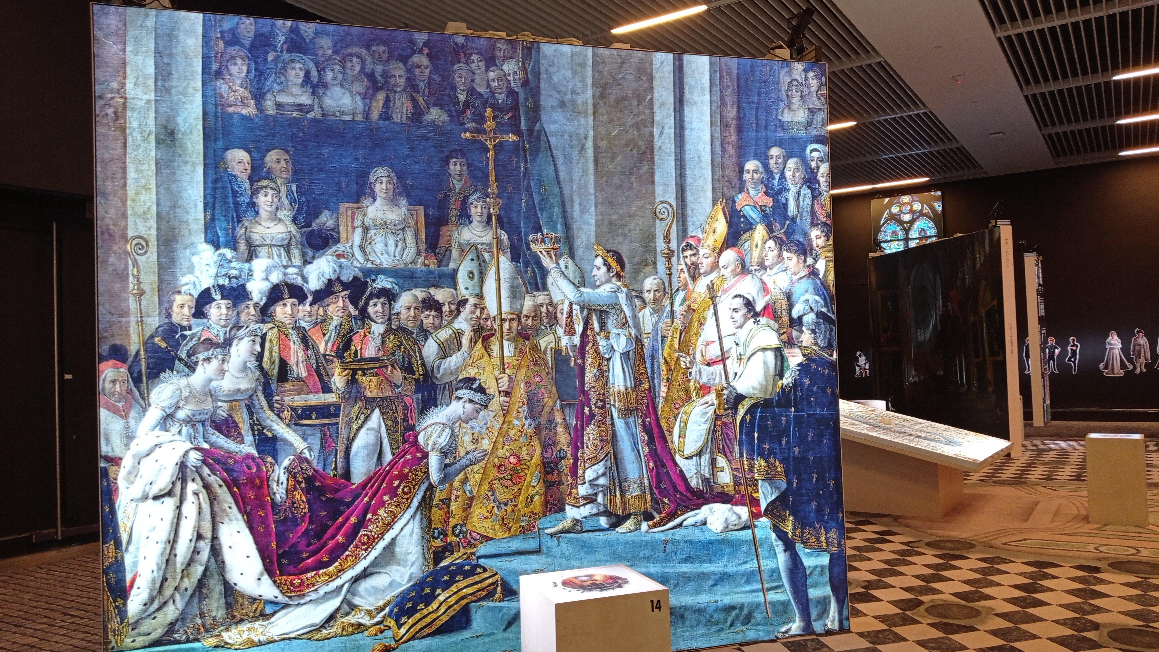 展览借助特制平板设备,从2019年巴黎圣母院的意外失火开始,引导观众扫码感受和观看巴黎圣母院的建造、玫瑰花窗的特点、1225年的“森林”屋架、1804年拿破仑一世加冕大典、天才建筑师欧仁·维奥莱-勒-杜克的全面修复、1857年打造的尖顶……感受其数百年的变迁与故事,观众还可以在平板设备上与致力于大教堂保护和复原工作的专家和工匠“面对面”。