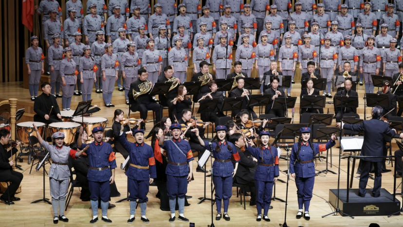 作为音乐会的重头戏,下半场上演了《长征组歌——红军不怕远征难》。在中国工农红军长征胜利90周年之际演绎这部作品,颇具意义。由谭利华与夏小汤联合执棒,通过音乐、朗诵、领唱与交响乐融合的手法,演绎从《告别》《突破封锁线》到《报喜》《大会师》共计10首歌曲,伟大的长征精神在歌声中生动展现。