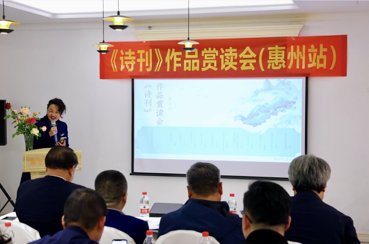 1月30日,“春天送你一首诗 · 《诗刊》作品赏读会”在广东惠阳举办。来自全国的近30位诗人、作家、艺术家相聚惠阳,品读《诗刊》,吟咏春天,以一首首动人的诗篇、一声声深情的诵读,搭建起一场动人心弦的春日诗会。《诗刊》社主编李少君,四川省文联副主席龚学敏,《诗刊》社主编助理、中国诗歌网总编辑金石开以及胡伟、胡红拴、庄添明、王江江、李云、方舟、陈希、冯娜、华海、邓醒群、仲诗文等诗人、专家及有关方面负责人参加活动。活动由中国诗歌网活动策划部主任祝雪侠主持。