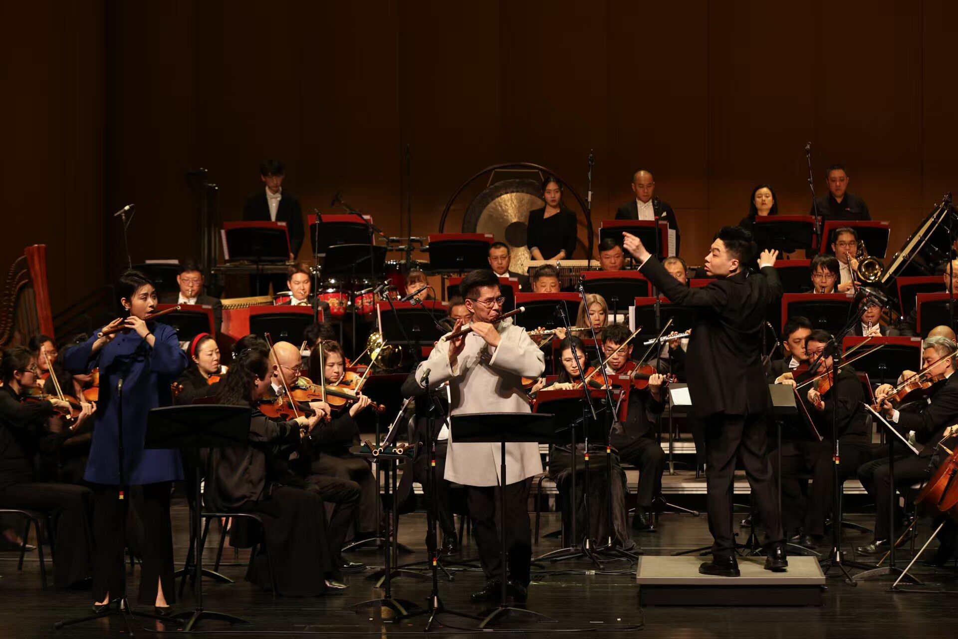 1月31日晚,“乐春——张维良从艺五十五周年系列音乐会”在苏州保利大剧院上演。现场座无虚席,1000余位来自苏州以及全国各地的笛箫业界人士和市民观赏了演出。音乐会由民乐演奏家、中国音乐学院教授张维良领衔主奏,笛箫演奏家张健、青年笛箫演奏家李芝含、青年琵琶演奏家沈洲晔担任独奏,青年指挥家柴昊夫执棒江苏省演艺集团交响乐团协奏。