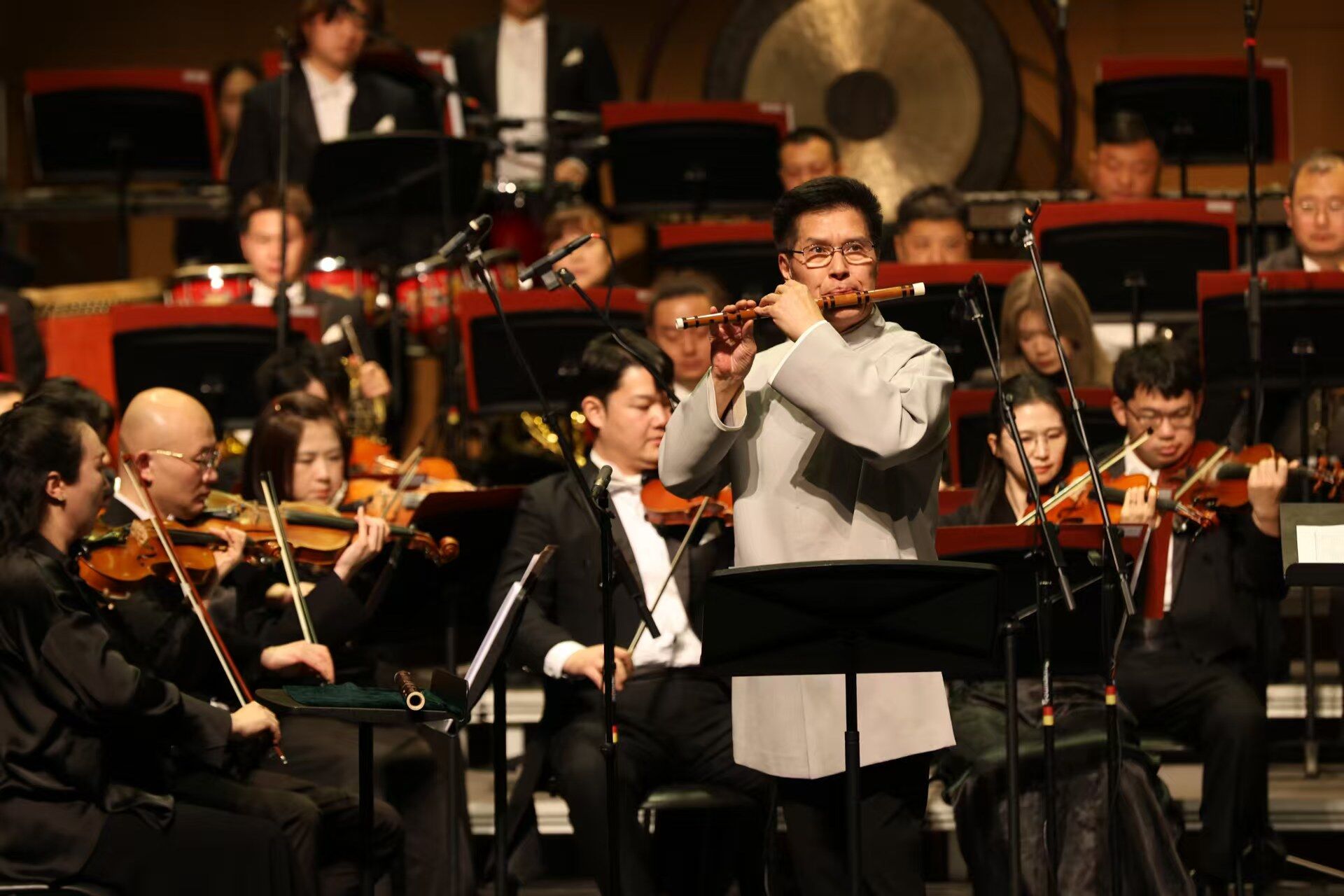 超过半个世纪以来,张维良以一笛一箫一埙“纵横四海”,让全球爱乐者认识中国音乐。同时,他从器乐表演辐射到教学、创作、理论科研等领域,硕果累累,桃李满门。55个春秋的耕耘,取其精华,在一场音乐会中精彩呈现。竹笛与乐队《乐春》《花泣》《梦境》三曲体现了张维良以我国民歌、说唱、戏曲音乐为题材入乐,由吴文化出发,形成自己的“音乐地图”。双竹笛与乐队《热情与冷漠的邂逅》,琵琶、竹笛与乐队《彝族舞曲》展现出张维良的笛艺传承与对后辈的提携。大轴曲《飞歌》更是他对当代竹笛音乐语汇的极致表达。高潮过后,张维良以一曲《小放牛》作为返场曲,用笛声道出游子对家乡的深情热爱。