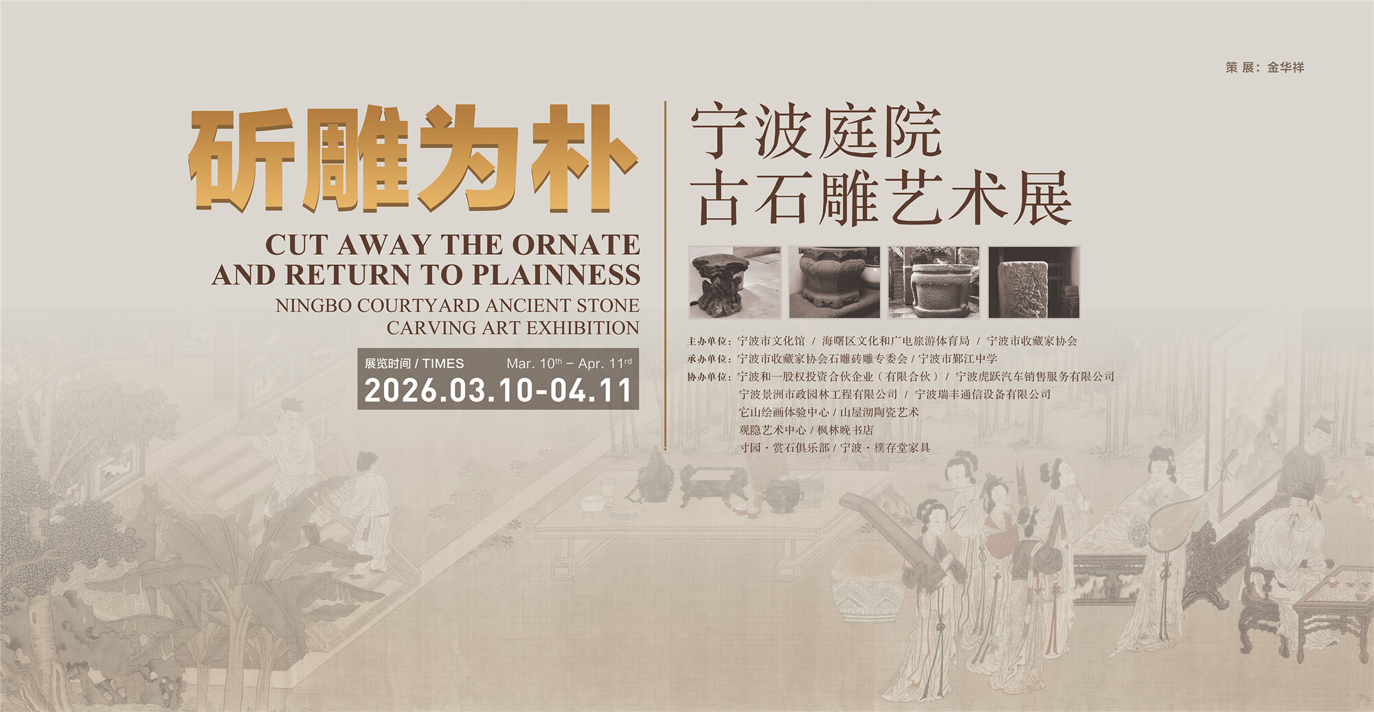 据宁波市收藏家协会副会长、石雕砖雕专委会会长、本次展览策展人金华祥介绍,展览以“斫雕为朴”为名,旨在彰显宁波古代庭院石雕的艺术特质:以石为材雕琢器物,无论形制繁简,皆能呈现自然与人文交融的素朴气质。展览聚焦宁波古代庭院石雕,甄选契合本地庭院风格的典型器物,既契合古人日常生活美学,又自然融入现代生活场景,呈现了一场跨越千年的对话。