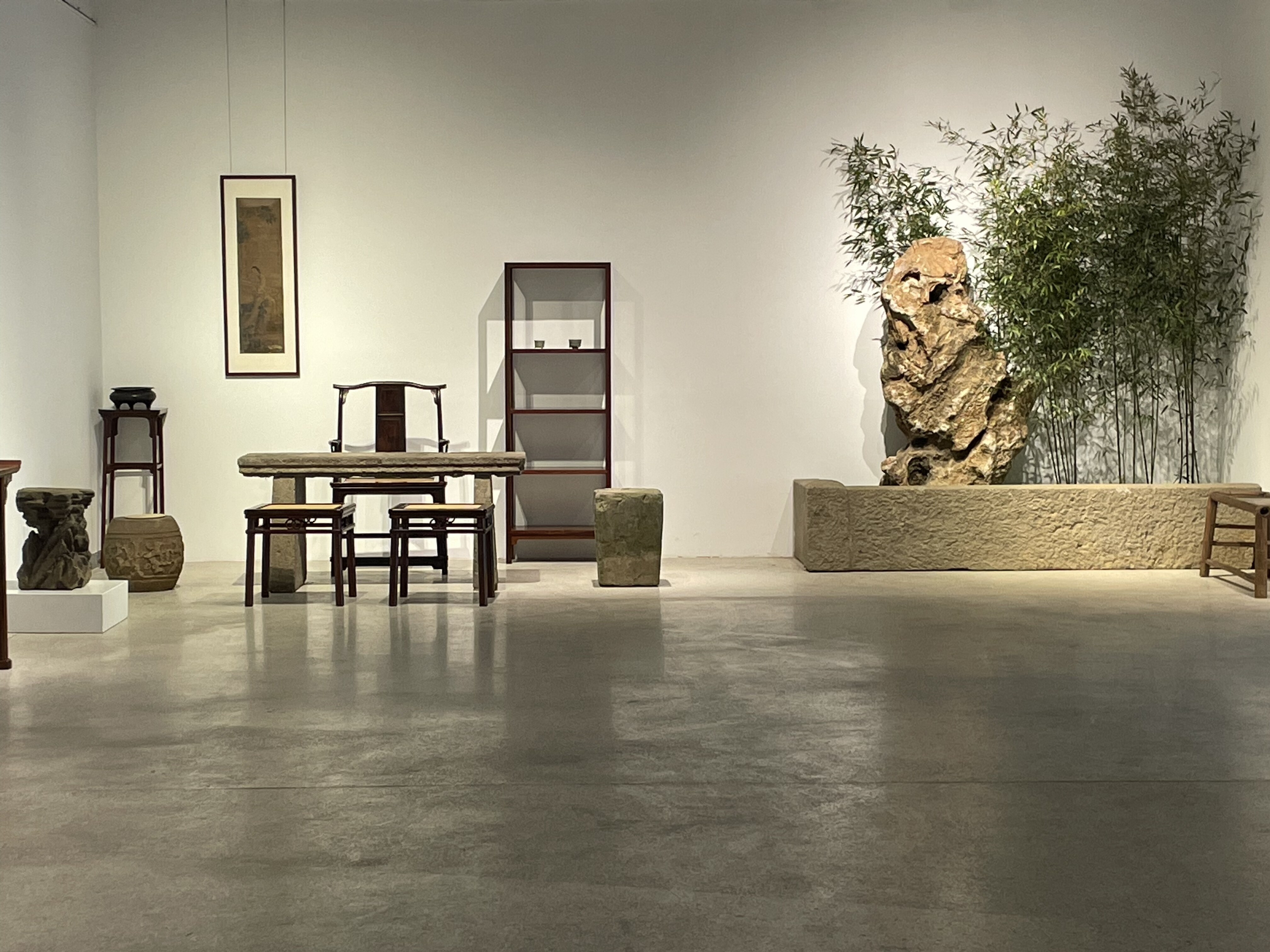 本次展览采用“石作器物+场景营造”的沉浸式展示方式,将石雕展品与空间美学融合,营造出既具古韵又有温度的观展氛围。展览汇集了14位宁波本地藏友提供的40余件石作家具,藏友身份涵盖企业家、自由职业者、艺术家等多个领域。展品以庭院古石雕为主,涵盖石鼓凳、石条凳、石桌、仿生石制家具、石盆、石案几等多种品类,全面呈现古代宁波石作家具在不同生活场景中的应用。