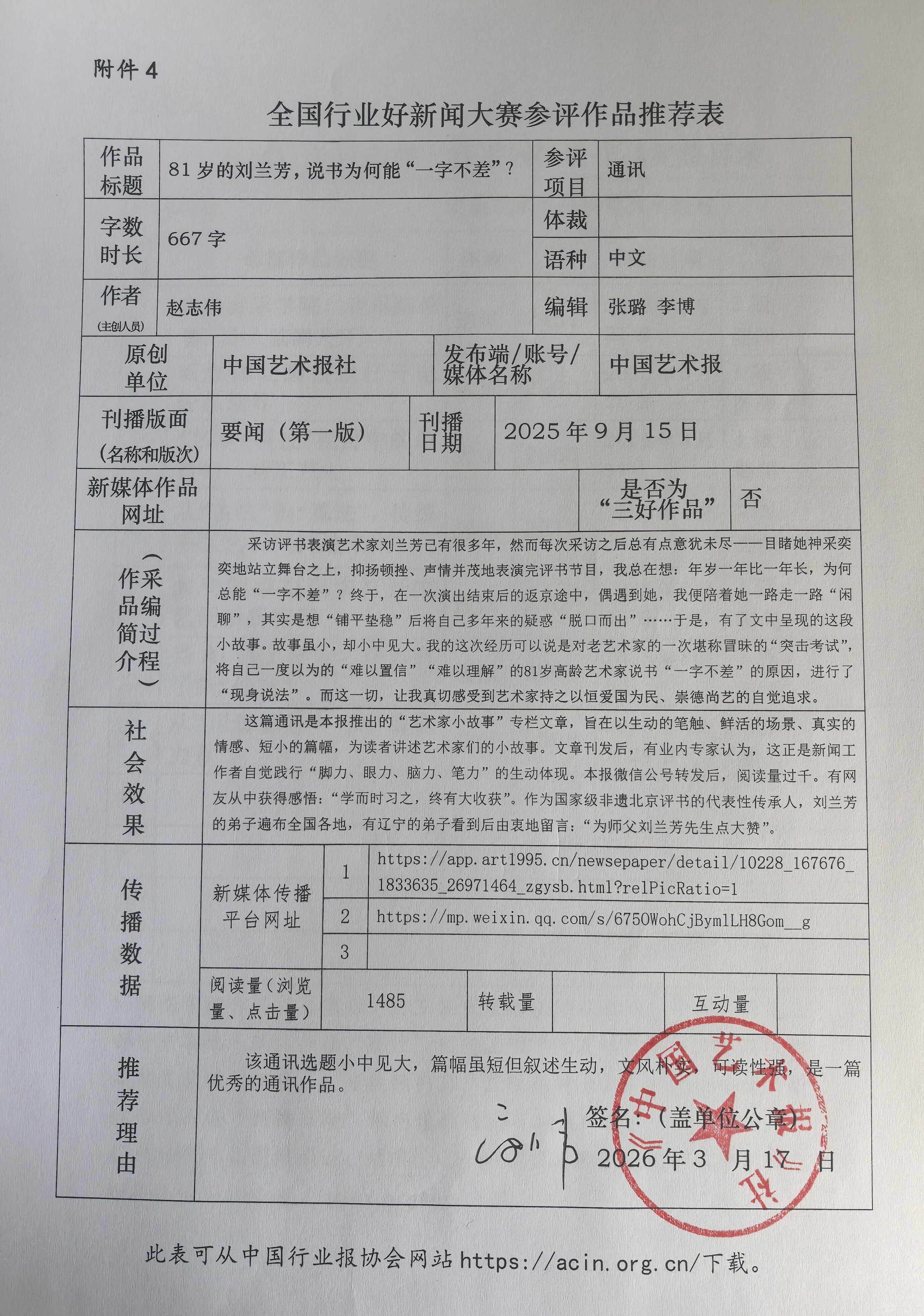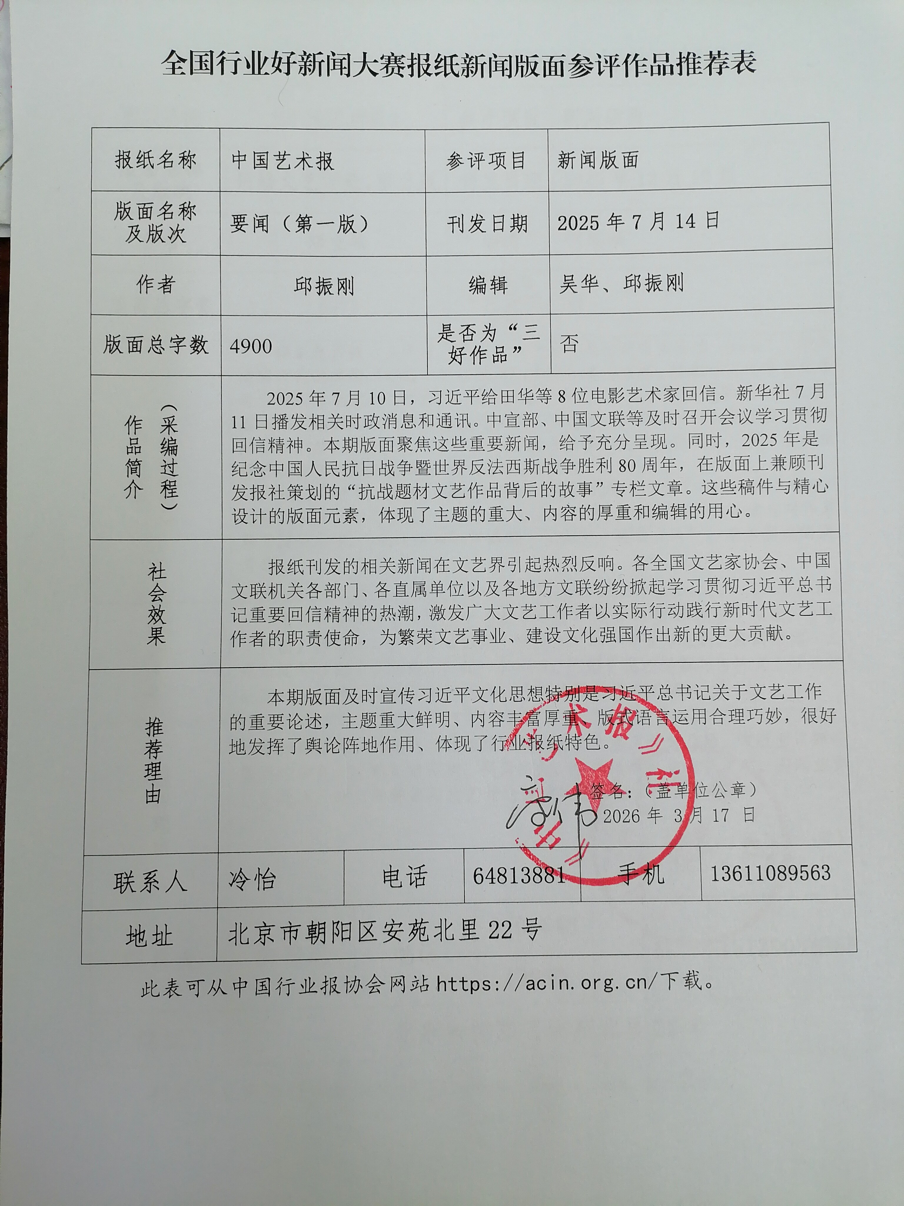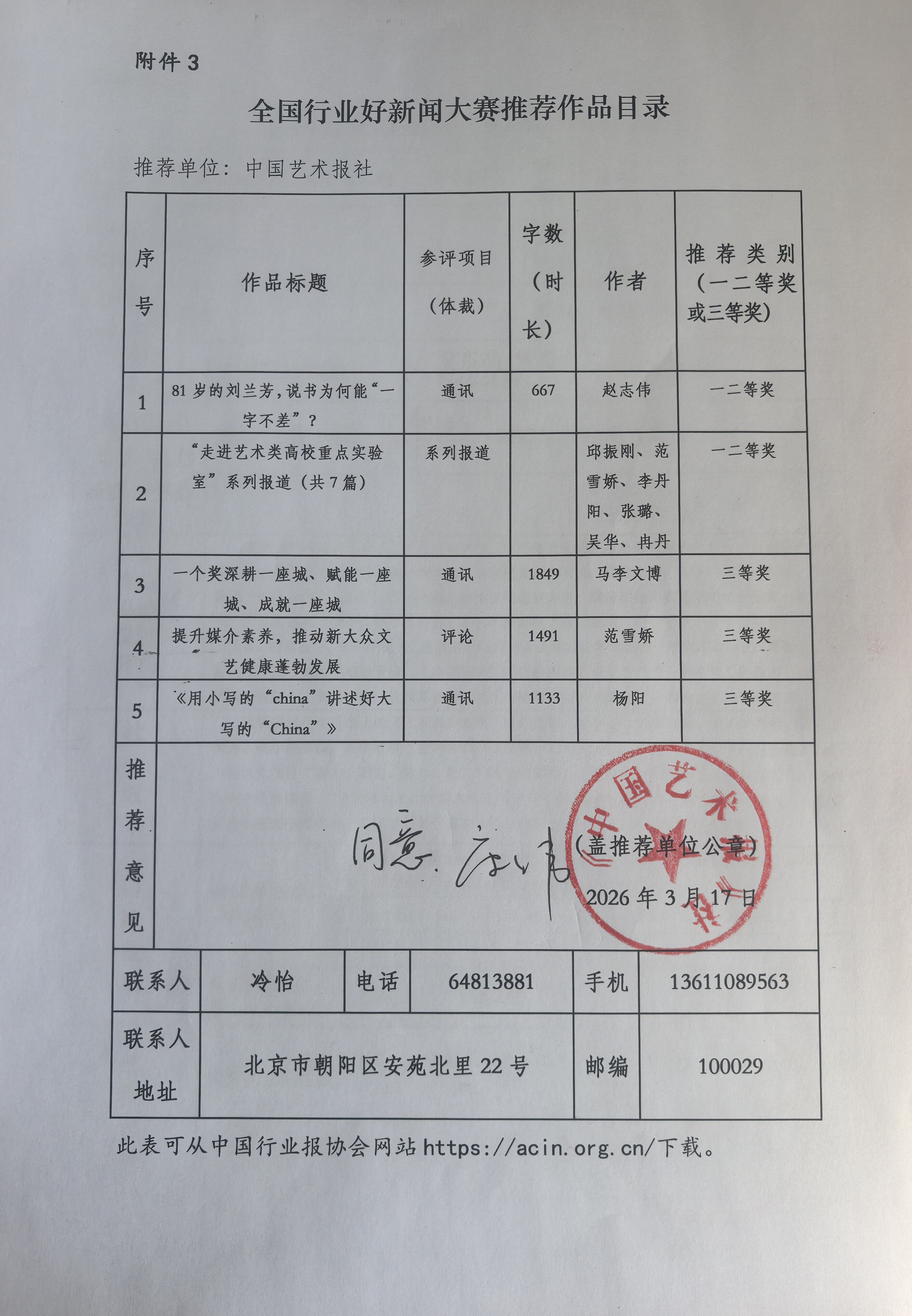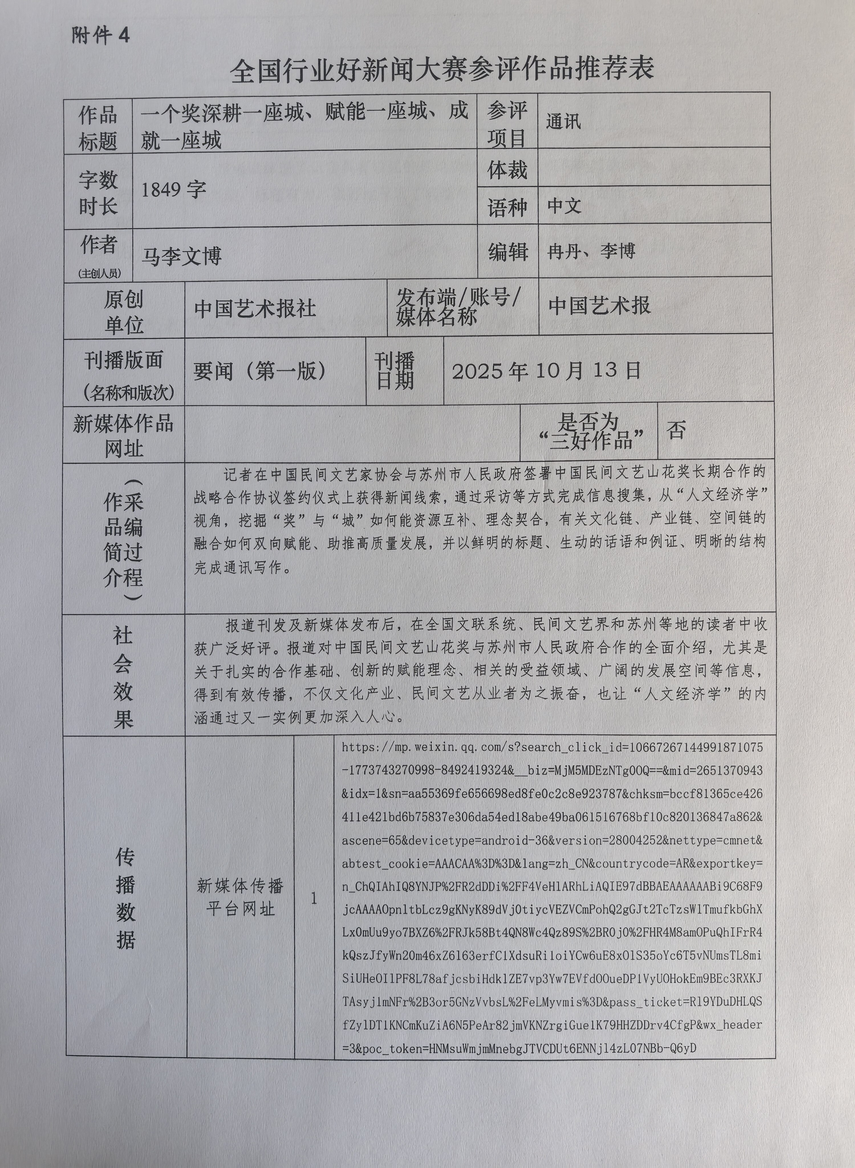 根据中国行业报协会《关于开展全国行业好新闻大赛的通知》要求,现将我社推荐的参评作品公示如下: